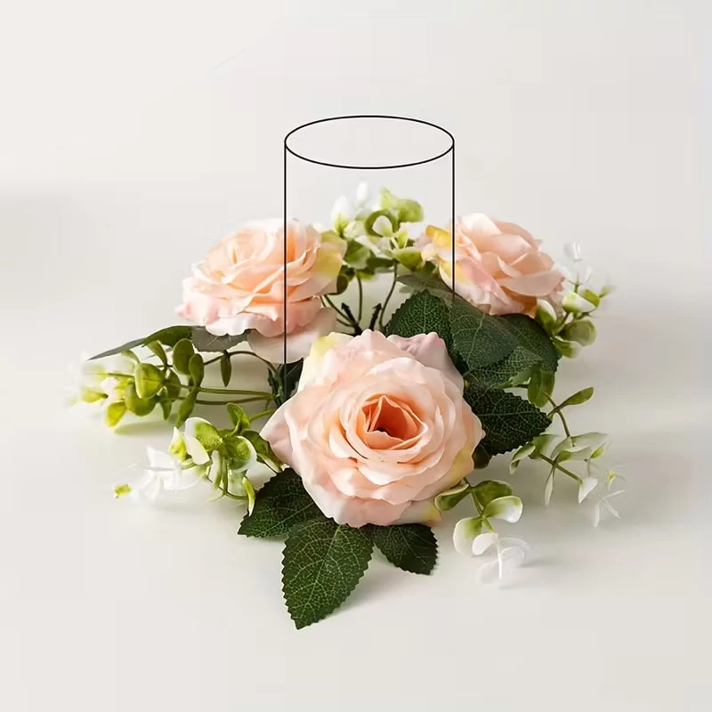 Hozd létre az ünnepi, meghitt hangulatot ezzel a 4 darabos művirágos gyertyatartó koszorú szettel! Ez a dekoráció elegáns rózsákkal és friss eukaliptusz hatású levelekkel díszített, így tökéletes választás esküvőkre, születésnapokra, vacsorákhoz vagy szobadekorációként.