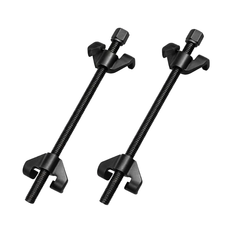 A kovácsolt rugóösszehúzó készlet nélkülözhetetlen segédeszköz személyautók futóművének szereléséhez. Elsősorban spirálrugók biztonságos összehúzására szolgál lengéscsillapítók, rugók és futómű-alkatrészek cseréje során. Masszív kialakításának köszönhetően nagy terhelést is megbízhatóan elvisel, így műhelyi és haladó otthoni felhasználásra egyaránt alkalmas.