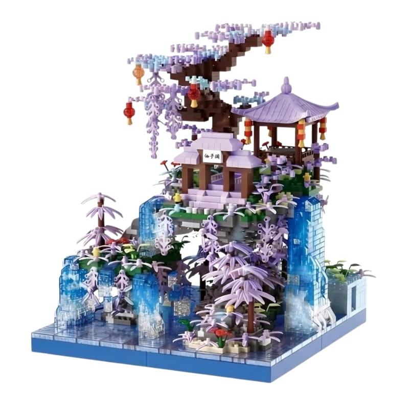 Ez a látványos építőkocka készlet egy hangulatos, ázsiai stílusú kertet jelenít meg pavilonnal, virágzó fával és több szinten elhelyezkedő vízesésekkel. A részletgazdag kialakítás különleges atmoszférát teremt, amely egy nyugodt hegyi kert hangulatát idézi meg.