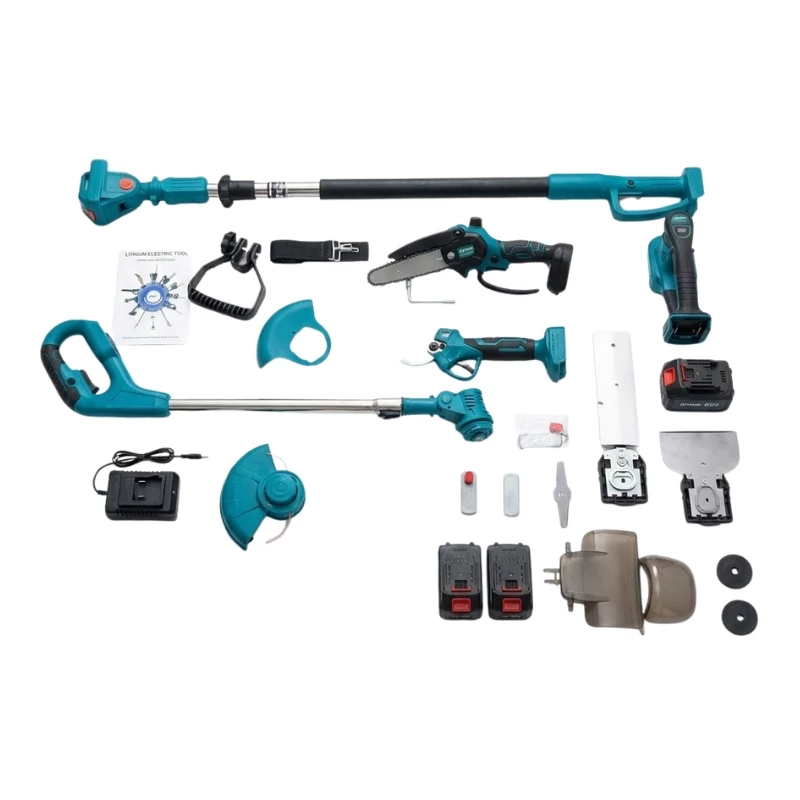 Komplex, professzionális felhasználásra is alkalmas akkumulátoros kerti szerszámkészlet, amely egyesíti a fűkasza, láncfűrész és metszőolló funkciókat egy rendszerben. A szénkefe nélküli motor nagy teljesítményt, hosszú élettartamot és alacsony karbantartási igényt biztosít, míg a teleszkópos nyél és a cserélhető fejek maximális rugalmasságot adnak a kerti munkák során.