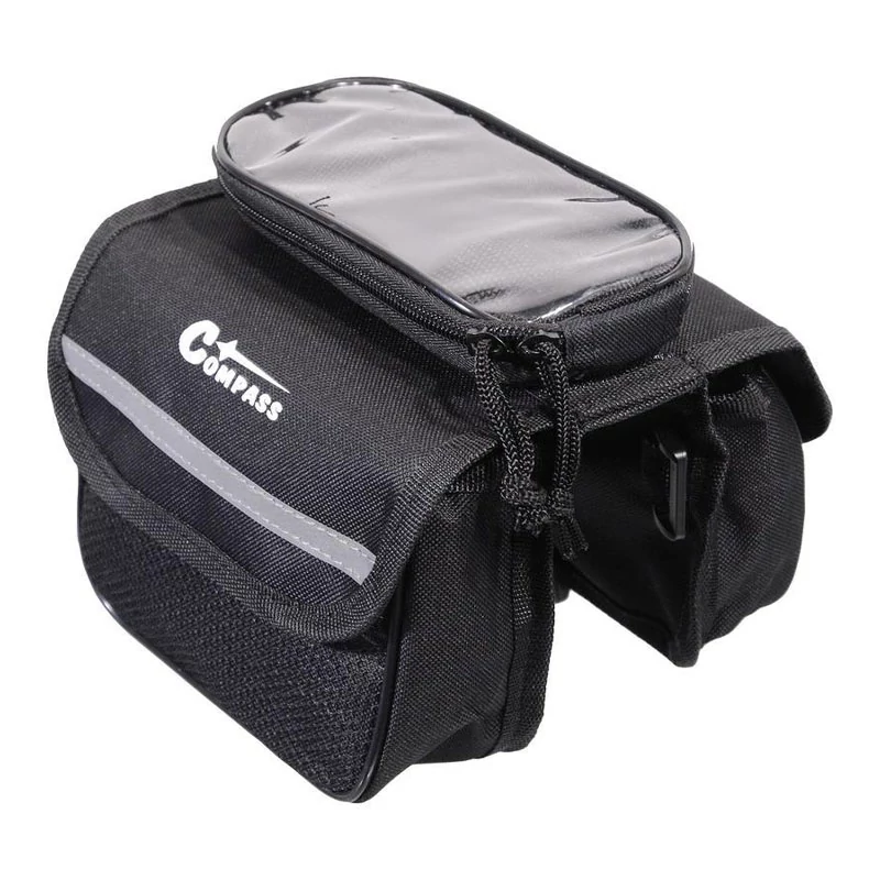 Kétoldalas Vázra Rögzíthető Kerékpártáska Telefontartóval – Fekete 12029
