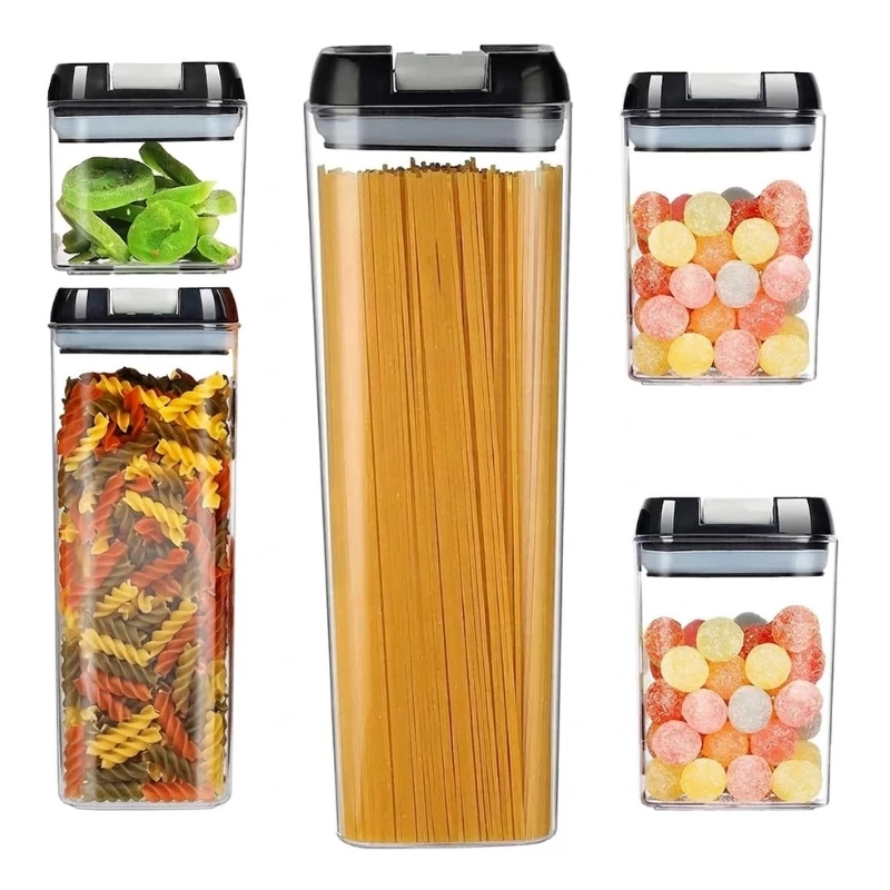 Praktikus és modern konyhai tároló szett, amely ideális száraz élelmiszerek, például tészta, rizs, liszt vagy cukor frissen tartására. A légmentesen záródó fedél és a szilikon tömítés megakadályozza a nedvesség és levegő bejutását, így az élelmiszerek hosszabb ideig megőrzik minőségüket.