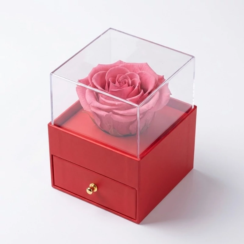 2 az 1-ben Ajándék: Nemcsak egy gyönyörű virágdekoráció, hanem egy praktikus ékszertartó is egyben. A doboz alsó részében található kihúzható fiók tökéletes rejtekhely egy nyakláncnak, gyűrűnek, fülbevalónak vagy egy szívhez szóló üzenetnek.
