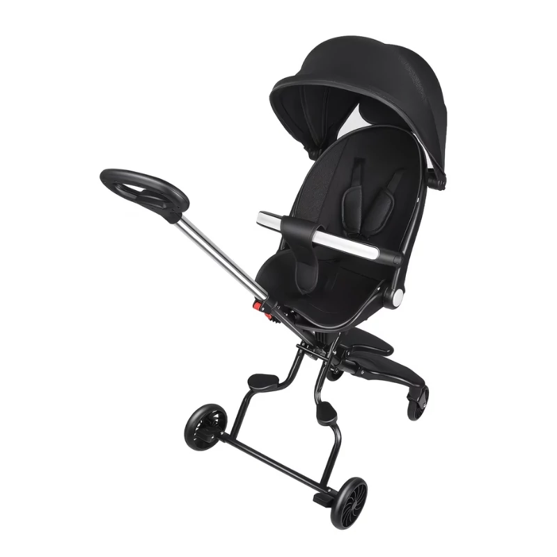 A stabil váz és a zárható kerekek biztosítják a könnyű irányíthatóságot és a biztonságos haladást. A levehető napellenző védi kedvencét a napsütéstől és az enyhe időjárási hatásoktól.