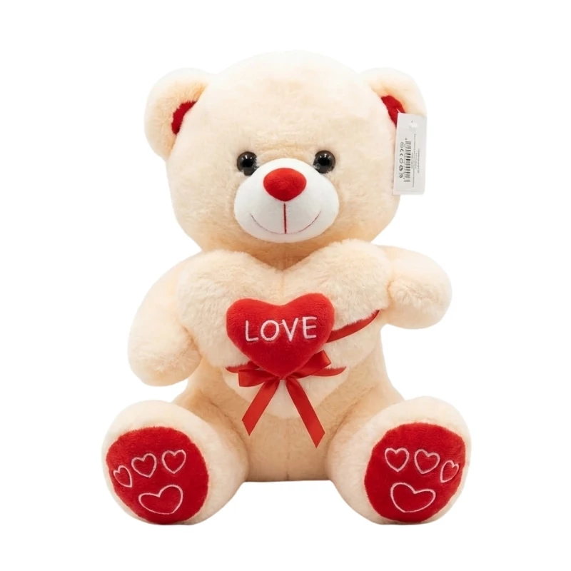 Keresi a tökéletes ajándékot, amivel mosolyt csalhat kedvese arcára? Ez a bűbájos, krémszínű plüss maci az egyik legkedvesebb módja a szeretet kifejezésének. Pihe-puha bundájával és ártatlan tekintetével azonnal belopja magát bárki szívébe. A maci egy "LOVE" (Szeretet/Szerelem) feliratú, élénkpiros szívet ölel magához, így az üzenet egyértelmű és szívhez szóló.