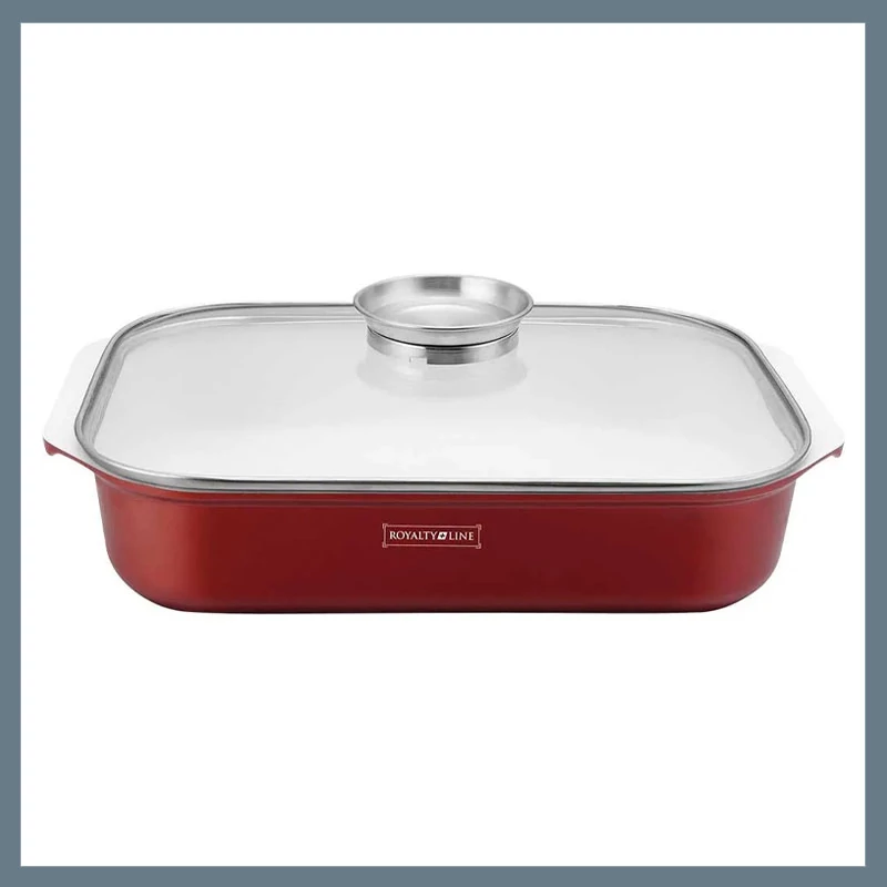 A kovácsolt alumínium vázú és tapadásmentes márvány bevonattal ellátott kacsasütőben az egészben hagyott kacsa vagy kisebb liba is jól párolható és süthető, valamint alkalmas még mindenféle rakott étel és sólet készítésére is.