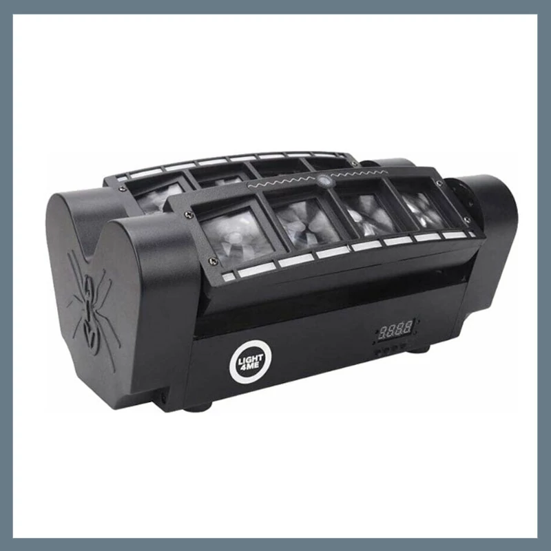 Spider Strobo Laser – LED disco fény, lézerrel és mozgó sugarakkal DLS-10 Professzionális LED disco effekt, amely garantáltan feldobja bármelyik rendezvényt. Ideális választás diszkóklubokba, zenei bárokba, DJ-partikra, 18. születésnapi bulikra és bármilyen táncos eseményre. Főbb jellemzők: 2 független, párhuzamos LED sugárnyaláb, hosszanti tengely mentén dönthető mozgással Mindegyik sugáron 4 db nagy teljesítményű 10W RGBW LED – ragyogó színek és dinamikus fényjáték Oldalsó LED-szalagok – extra fényhatások a még látványosabb megjelenésért Beépített piros és zöld lézer – különleges, energikus fénykombinációk Digitális kijelzős vezérlőpanel – egyszerű kezelhetőség 4 nyomógombbal XLR bemenet és kimenet – DMX protokollal vezérelhető Működési módok: automatikus, DMX, Master/Slave,